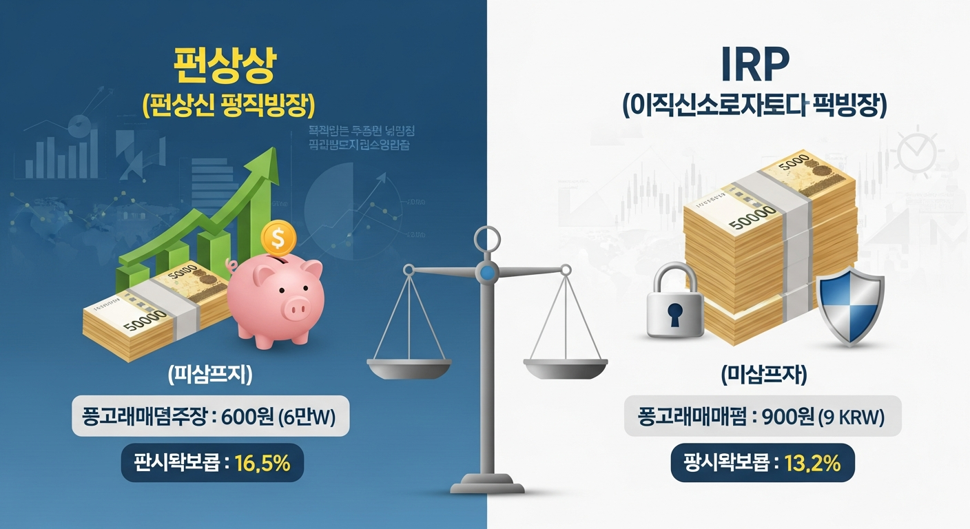 - 단점: IRP보다 세액공제 한도가 낮음 (단독 600만원), 원금 손실 가능성 있음 (펀드의 경우)